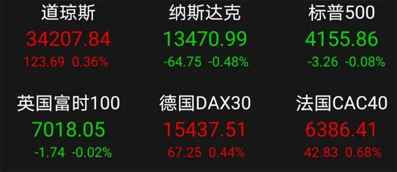 截至当日收盘时,波音上涨超过3%,卡特彼勒上涨近1%,道指收于34207.84点,小幅走高0.36%。而标普500指数收于4155.86点,跌幅为0.08%;纳指收于13470.99点,跌幅为0.48%。