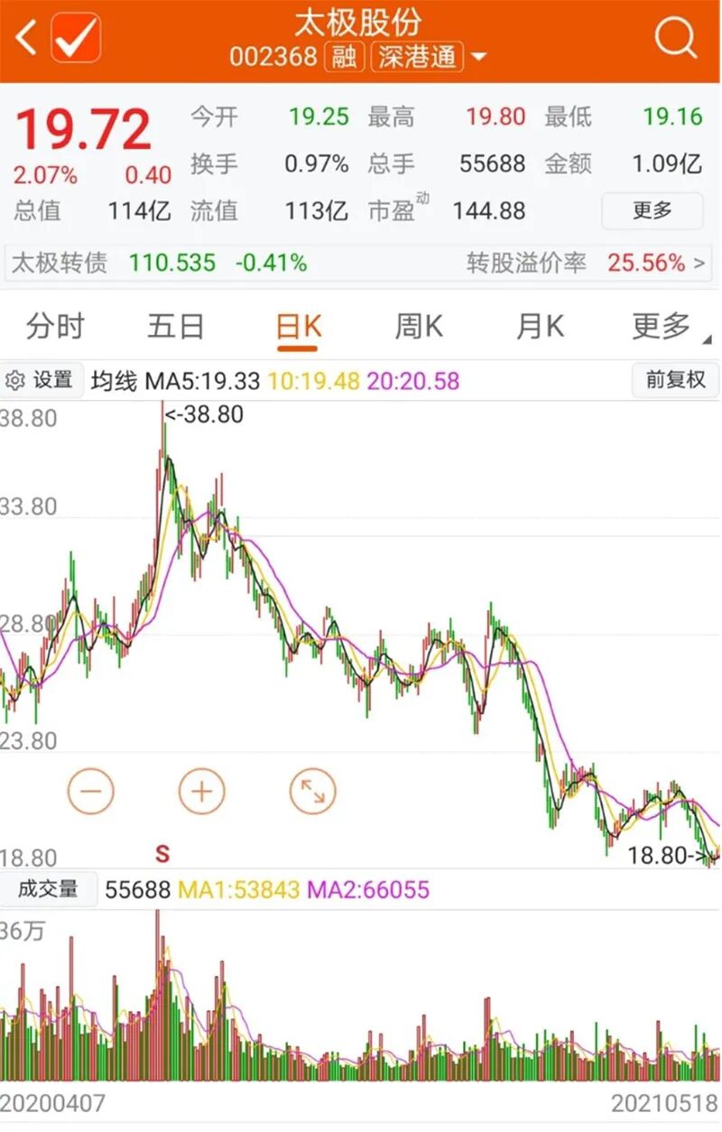 4月下旬以来,太极股份开启新一轮下跌,目前股价已跌至19元左右,同去年7月初的38.8元高点相比,已经处于腰斩状态。