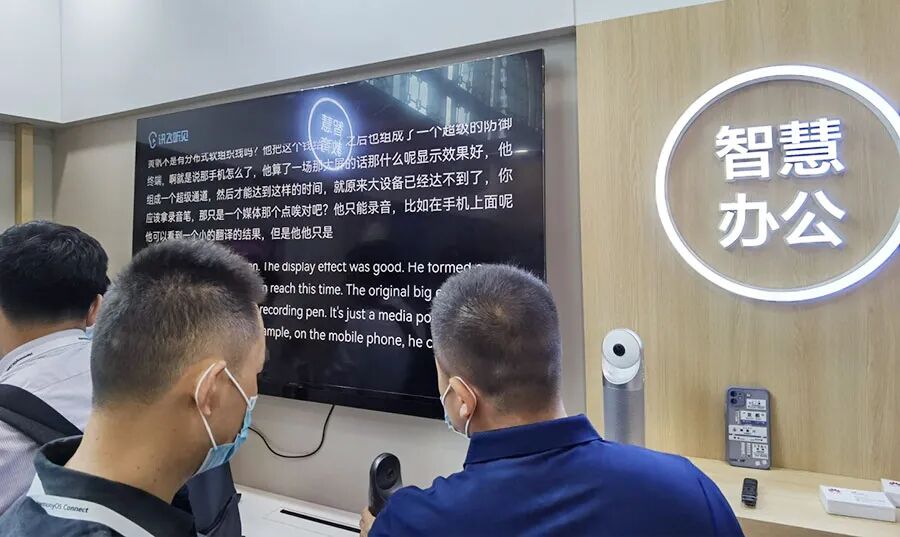 在智慧办公展区,科大讯飞展出了智慧办公解决方案。