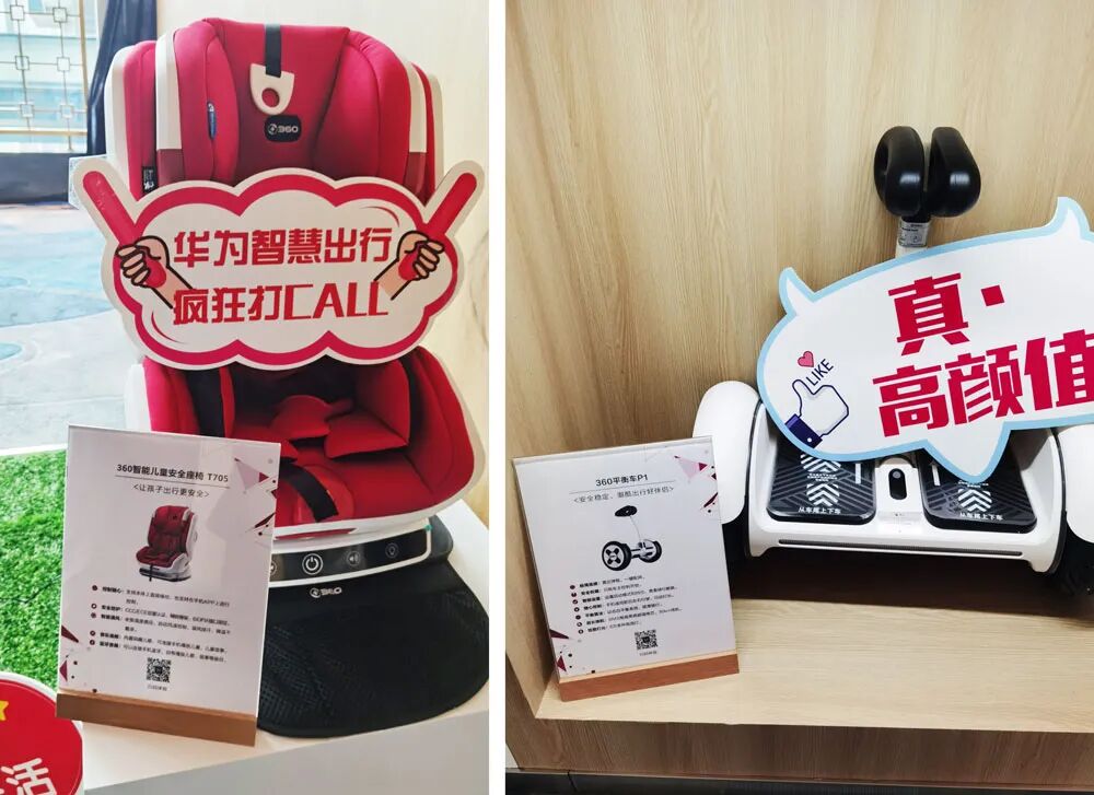 在智慧出行展区,三六零展出了一款平衡车和一款汽车儿童安全座椅。