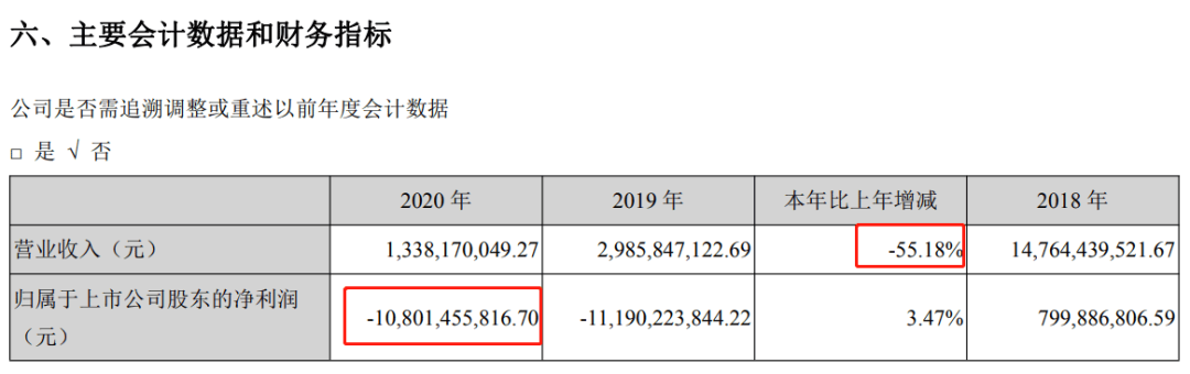 年报显示,*ST众泰去年营收同比下降55.18%;归母净利润巨亏108亿元。