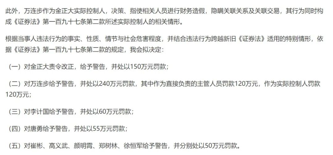 **一纸罚单的落地,“肥料大王”万连步的光辉形象轰然倒地,ST金正造假案也尘埃落地。从调查结果来看,ST金正2015年至2017年的3份年报,以及2018年半年报,均存在虚假记载。