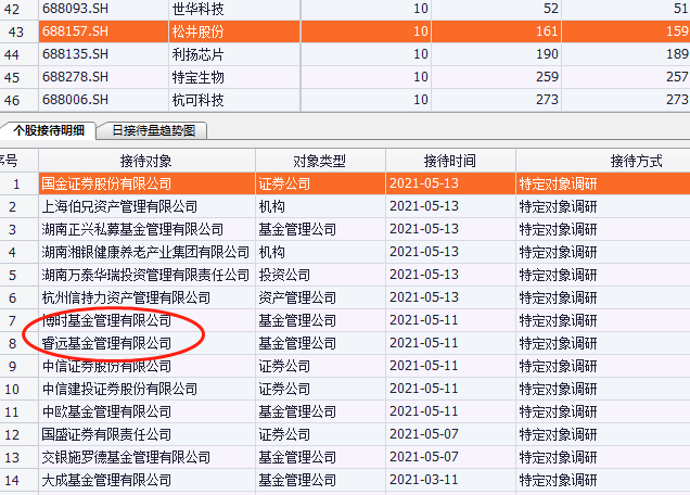 松井股份的接待名录中,也出现了知名公募基金博时基金和睿远基金的名字。
