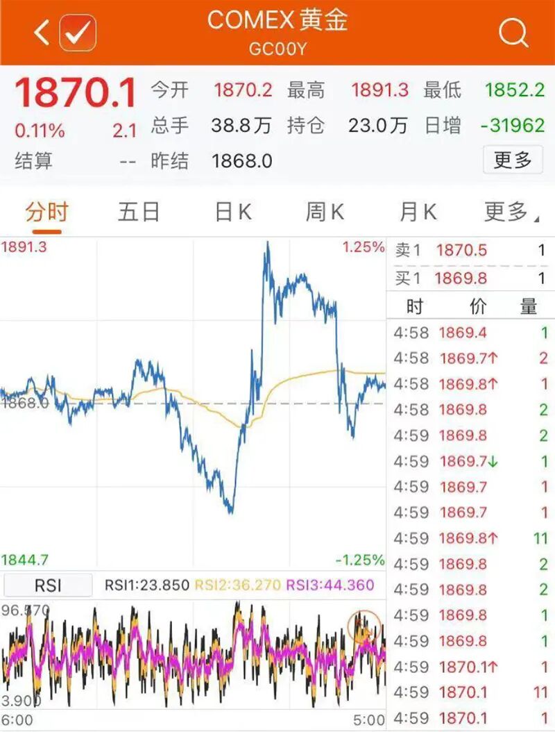 伴随虚拟货币市场的剧烈波动,资金开始涌向避险天堂——黄金。当日,纽约商品交易所黄金期货市场交投最活跃的6月黄金期价较前一交易日上涨13.5美元,收于每盎司1881.5美元,涨幅为0.72%。