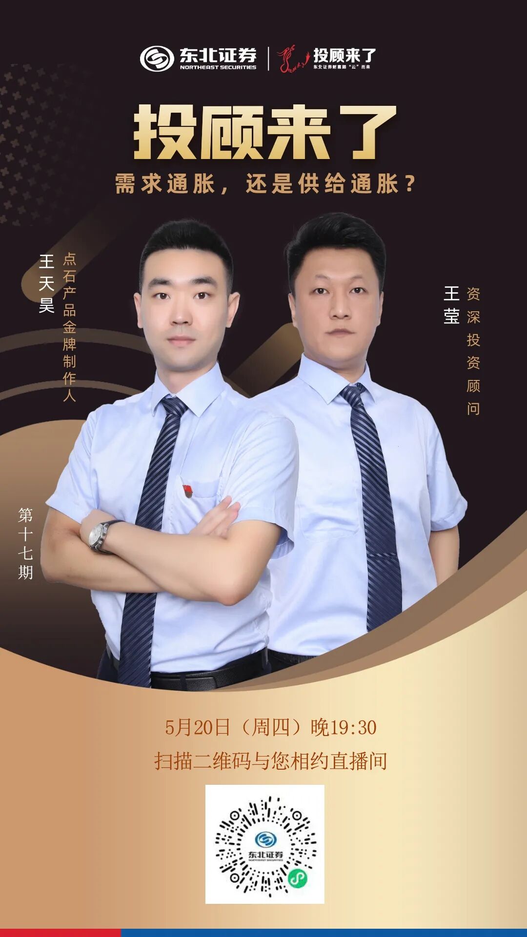 美国货币大超发,大宗商品价格涨,通胀?滞胀?机会在哪里?5月20日周四晚19:30-20:30东证小哥哥资深投资顾问,点石二号产品价值股票池掌门人王莹、基金精选池掌门人王天昊,520“深情告白”《需求通胀,还是供给通胀?》东北证券云直播·财富踏云而来。