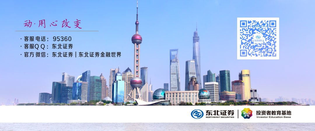 本产品所涉及信息均来源于公开资料,所载资料的来源及观点的出处皆被东北证券认为可靠,但本公司对这些信息的准确性和完整性不作任何保证。本产品中的信息或所表达观点不构成其所涉及股票、基金、债券、金融衍生品、港股通和期权等投资标的买卖的建议,产品中的内容和意见仅反映本公司于发布本产品当日的判断,不保证所包含的内容和意见不发生变化。东北证券不对因使用此产品材料而引致的损失负任何责任,客户并不能依靠此产品而取代行使独立判断。