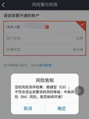 选择要开通的账户,根据风险告知提示,确认是否继续开通。