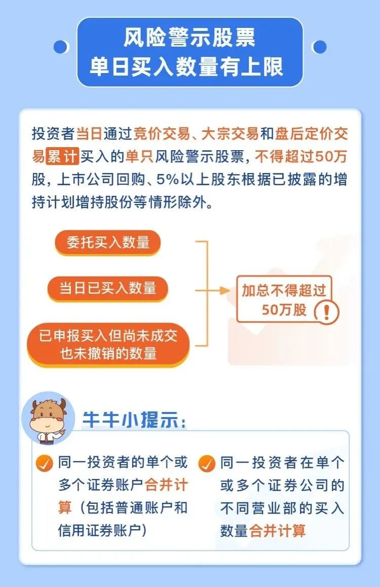 2021年5月17日,《深圳证券交易所交易规则(2021年3月修订)》第4.5.1条、第4.5.2条及第4.5.4条关于风险警示股票的交易规则正式实施。 《交易规则》实施后,投资者首次买入风险警示股票,需要以纸面或电子方式签署《风险警示股票风险揭示书》(以下简称《风险揭示书》)。