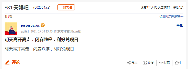 当然还有的表示,明天复牌之后是利好兑现之时,担忧会闪崩跌停。