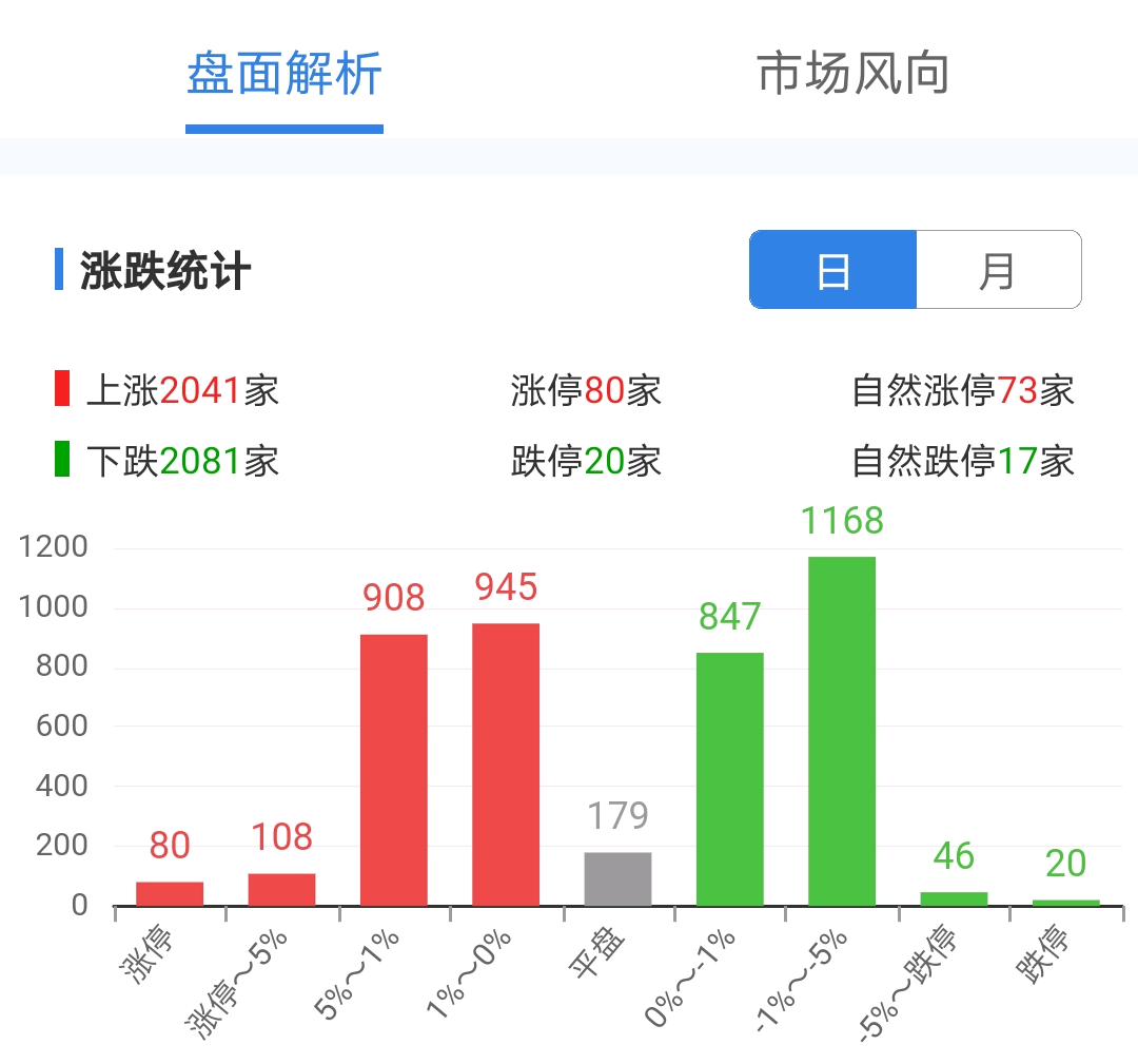 今日市场资金再度“跷跷板”,碳中和、资源周期股有卷土重来的迹象;而生物制品、军工则跌幅靠前。涨价家数方面,上涨2041家,下跌2081家,涨跌比接近1:1。
