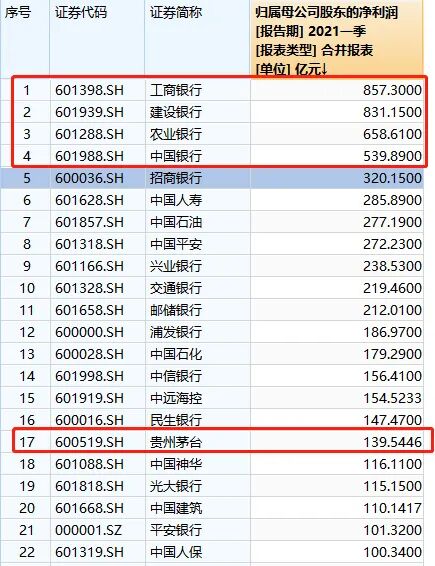 从一季度归属母公司股东净利润来看,A股上市公司超过331亿元的,只有工行、建行、农行、中行四大国有银行,招商银行320亿元略低于腾讯。