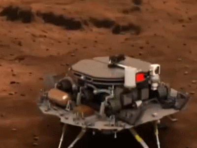 4时许,着陆巡视器与环绕器分离。历经约3小时飞行后,进入火星大气,经过约9分钟的减速、悬停避障和缓冲,成功软着陆于火星乌托邦平原南部预选着陆区。
