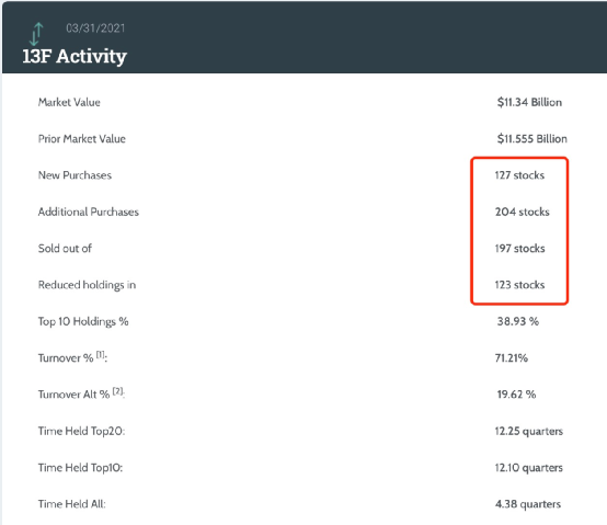 调仓操作方面,今年一季度,桥水共新进127个标的,增持204个标的,清仓197个标的,减持123个标的。