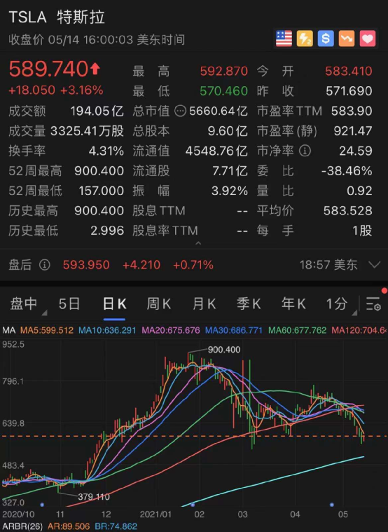 今年一季度,特斯拉在触及900美元的股价低点后震荡下行,当季度跌超5%。