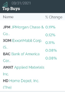 一季度,先锋领航前五大增持股为摩根大通、埃克森美孚、美国银行、应用材料公司、家得宝,主要为顺周期概念股。