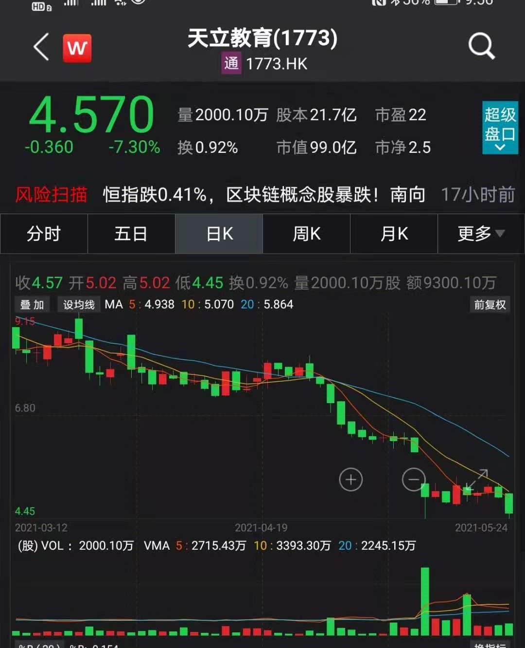 截至发稿(北京时间5月24日晚近24点),好未来下跌12.52%,新东方下跌11.79%,高途下跌10.34%,美联国际教育领跌,下跌超30%,朴新教育、华富教育、无忧英语等普跌。