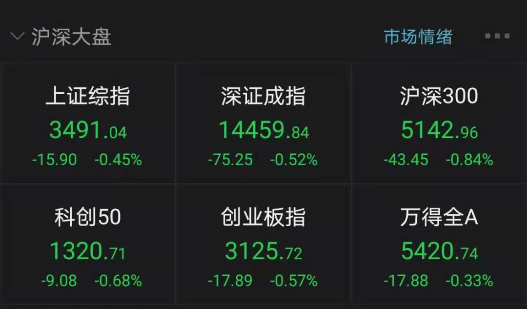 受券商、银行等板块影响,今日早盘A股三大股指冲高回落,创业板指一度跌超1%。截至收盘,沪指跌0.45%,报收3491点;深成指跌0.52%,报收14459点;创业板指跌0.57%,报收3125点。沪股通净流出13亿,深股通净流入12.9亿。