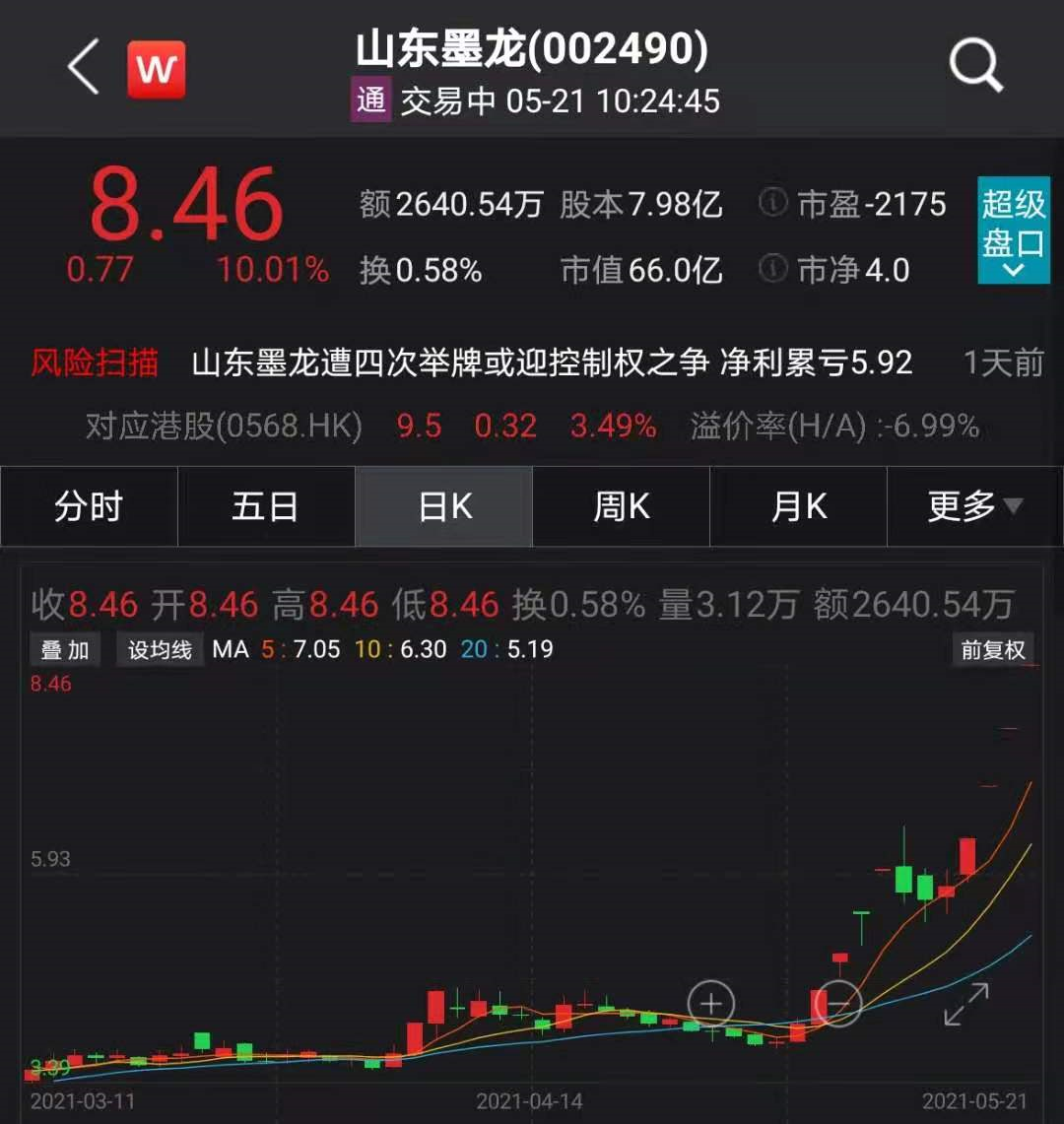 21日,山东墨龙连续第三日涨停,这已经是该股12个交易日里的第8个涨停。