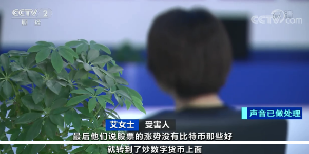 受害人 艾女士 :每天听直播,听他们讲课,他们说股票的涨势没有比特币那些好,就转到了炒数字货币上面,投了30多万元。
