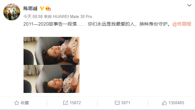 520竟等来离婚?5月20日,佟丽娅刚刚发文官宣与陈思诚离婚:“人间值得,未来可期。谢谢你。”陈思诚同时发文:“2011—2020故事告一段落…… 你们永远是我最爱的人,换种身份守护。”