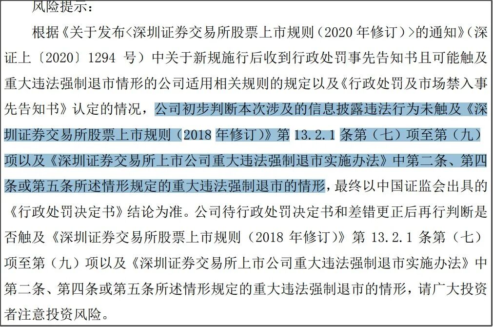 在这份长达7页、5000多字“收到证监会处罚”的公告里面,金正大最担心的事情是是否会让公司强制退市,并率先提出了“不会被退市”的主观判断,随后才是上述提及的关于财务造假的具体内容来源:公司公告