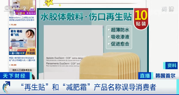 例如这个伤口贴又被称为人工皮,就在韩国不少电商平台上被宣传有消除疤痕和色素沉淀、促进皮肤再生等功效。而此次被曝出的另一类产品脂肪霜,则有近七成广告宣称将其涂抹在大腿、腹部等脂肪易堆积部位,就能渗入皮肤,分解和消除脂肪,达到减肥瘦身的效果,其发热功效甚至被夸张为“燃烧脂肪”。以上广告都被韩国食品医药品安全处判定为虚假或夸大宣传。