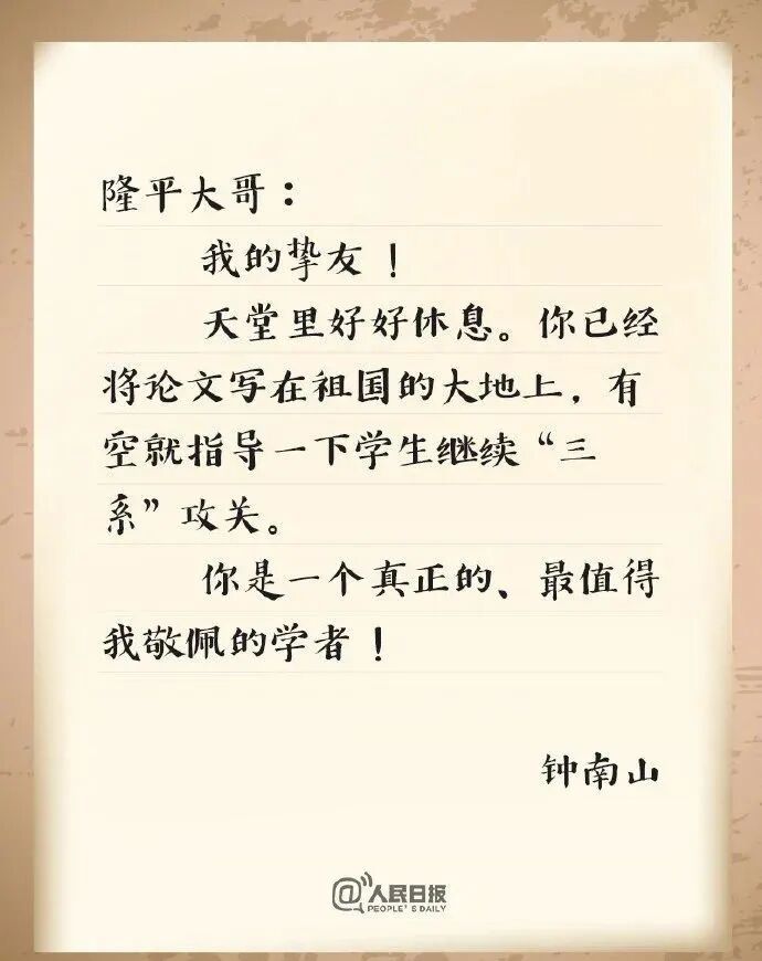 惊悉袁隆平院士逝世后,钟南山院士送上简洁而深情的缅怀之辞: