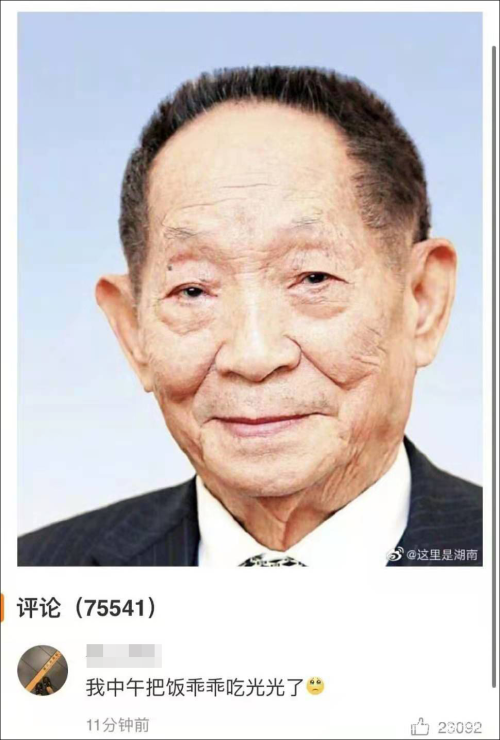 许多网友在评论区晒出自己的“光盘”,用行动悼念袁隆平院士。