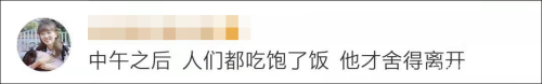 “中午之后,人们吃饱了饭,他才舍得离开。”