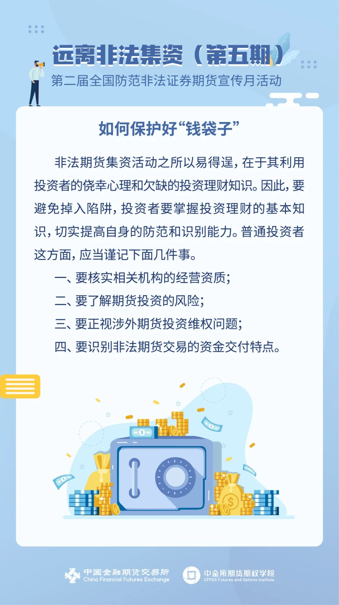 正值 第二届全国防范非法证券期货宣传月和第三届“5·15全国投资者保护宣传日”来临之际 ,中金所期货期权学院特别制作了五期 “远离非法集资” 系列图文,为大家介绍非法集资的基本定义、如何认定非法集资中的“非法性”、非法集资案件的特点、涉及期货非法集资的常见表现形式,以及如何保护好“钱袋子”等方面的内容,希望能够帮助大家提高警惕,远离陷阱。