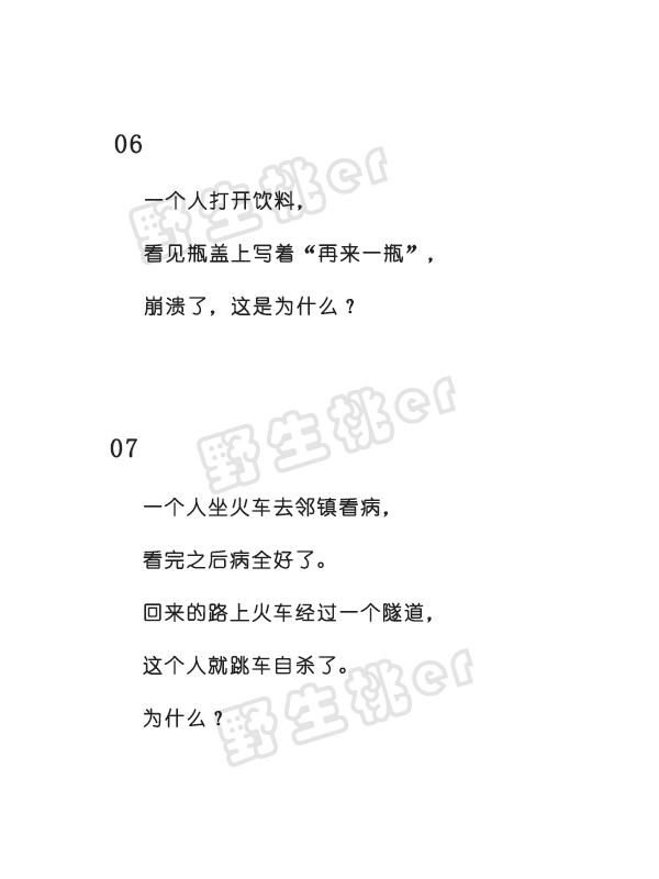 长按二维码,订阅 【野生桃er】 发送关键词 【 推理 】 即可获得推理小故事全讲解!
