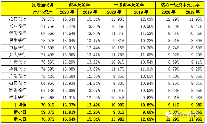 (二)资本情况:招行经营最轻型,部分银行核心一级资本补充压力较大