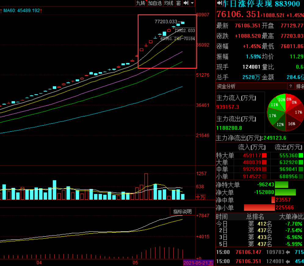前言:国泰君安:横盘震荡不会长久 上证将挑战四千点;农业农村部:将发扬袁隆平的崇高精神 坚决打赢种业翻身仗;央行副行长刘国强:未来人民币汇率双向波动成为常态;中信证券:通胀担忧的顶点已过 宏观流动性延续宽松;比特币跌至36000美元/枚下方,日内跌超4%;候变化致命性或是新冠5倍 “碳中和"时代正在崛起;下周千亿解禁洪流来袭 21只解禁股业绩翻倍增长;全球新冠肺炎确诊病例超1亿6515万;机构分析:美联储较晚收紧货币政策可能为黄金创造良好环境;易会满:券商既要强化保荐能力又要强化定价能力,坚持自律措施的市场约束功能 引导券业合规展业,证券行业要助力增强投资者的获得感。周末消息面积极,监管层喊话券商,周一证券要集体发动了,政策市,券商是最核心的代表,看看券商的力度,是否来个集体启动,彻底把大盘指数带上去,这个位置的大盘指数,向上发动行情是可以做到的,周五量能达到9000亿,周一如果破万亿,那么行情即将开启,关注核心题材,碳中和、券商、农业、军工、消费电子、半导体、芯片等核心概念股。