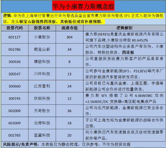 不得不说,华为号召力太强,吸引了一堆资金跟风炒作;而华为、宁德、长安打造的高端品牌,还是挺让外界期待的。只要这个利好没落地,北汽蓝谷,小康股份,长安汽车这几家,后面还会反复的炒!