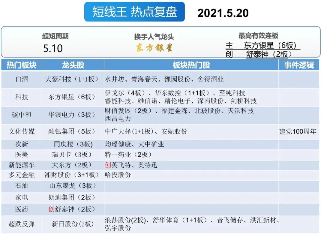 超短大周期可能处于震荡状态,超短小周期处于混沌期未表态。近期的超短风格是炒独立逻辑个股,大部分连板票都是如此,市场仍无主线,“泛汽车”方向走弱,碳中和想当大哥但尾盘重大分歧。
