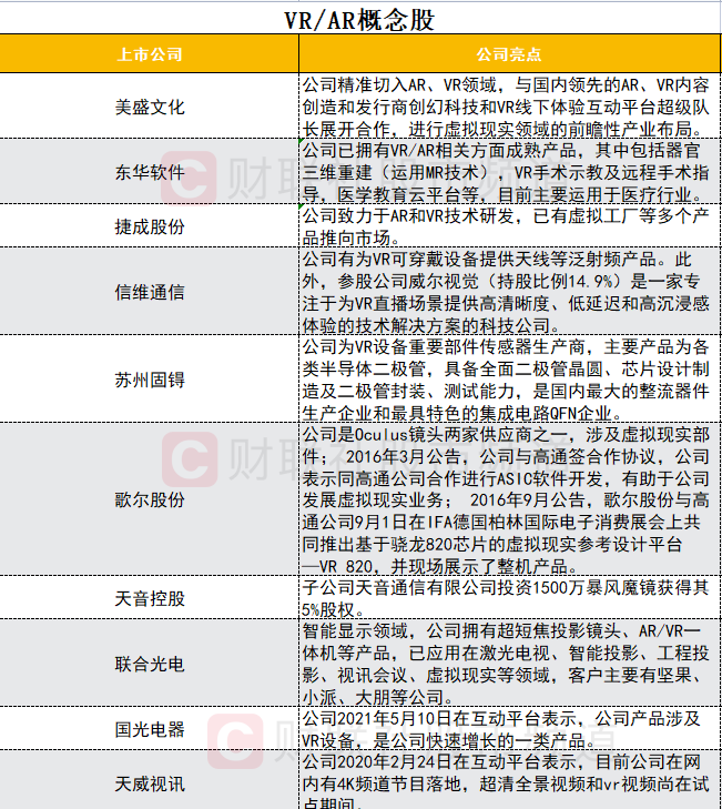 对于具体投资建议方面,浙商证券看好国内供应链企业由终端组装环节至上游增量元器件端的受益趋势,如OculusQuest等主流硬件代工厂―歌尔股份;光波导片供应商―水晶光电;ARVR镜头供应商―舜宇光学等。