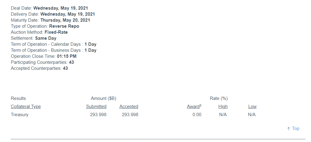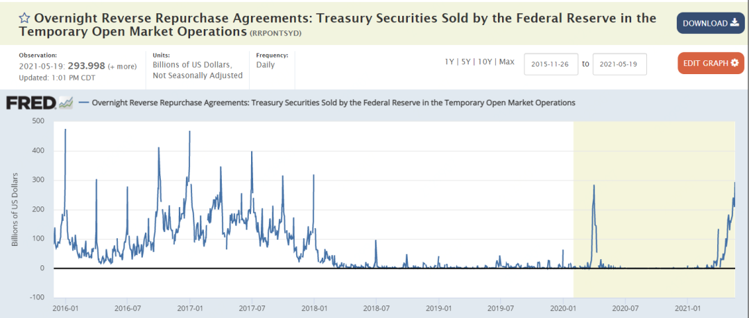 纽约联储公布的最新数据显示,美联储的隔夜逆回购操作规模在周三(5月19日)达2939亿美元,这一数字不仅超过了2020年3月的冠状病毒危机期间的高点,而且是自2017年以来的最高水平!
