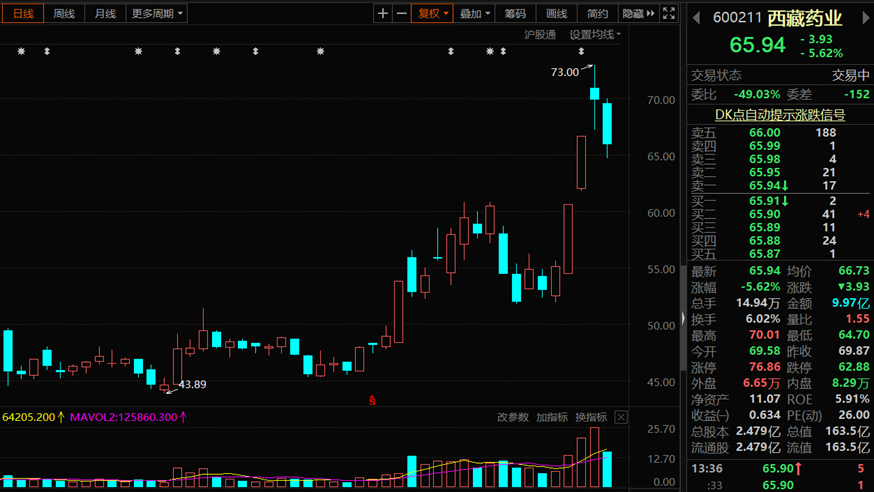 首先,从板块上来看,昨天医药的开局和上周五相比,明显是退潮趋势,吉药控股开盘就是大幅低开,圣济堂更是直接被核按钮,所以西藏药业面临额抛压自然也大,这个咱们在开盘就能确定。