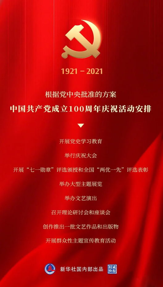这次100周年庆祝活动,分为 开展党史学习教育、举行庆祝大会、开展“七一勋章”评选颁授和全国“两优一先”评选表彰、举办大型主题展览、举办文艺演出、召开理论研讨会和座谈会、创作推出一批文艺作品和出版物,以及开展群众性主题宣传教育活动 8个部分。