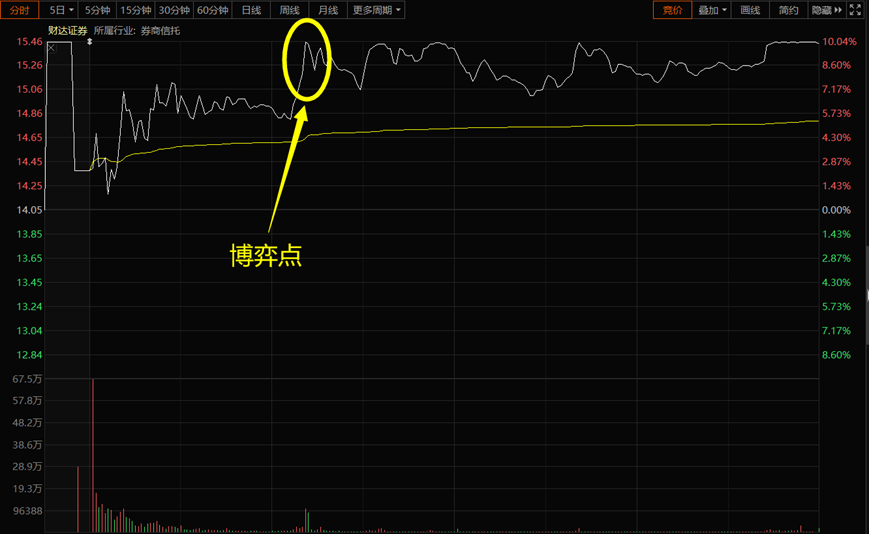 其次,财达证券今天的走势本身就很烂。你要说第一次放量上板的时候进去赌一把,也可以理解,反正其他的都不看,就赌今天大盘情绪好,赌财达证券里面的资金不砸盘。