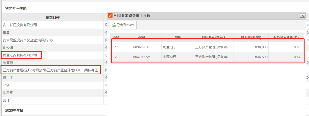 从中源家居的一季度报来看,增持的私募涉及到 民生证券 和 三方资产正金泽之FOF的私募 ,在相同基金下,还有 利通电子 。