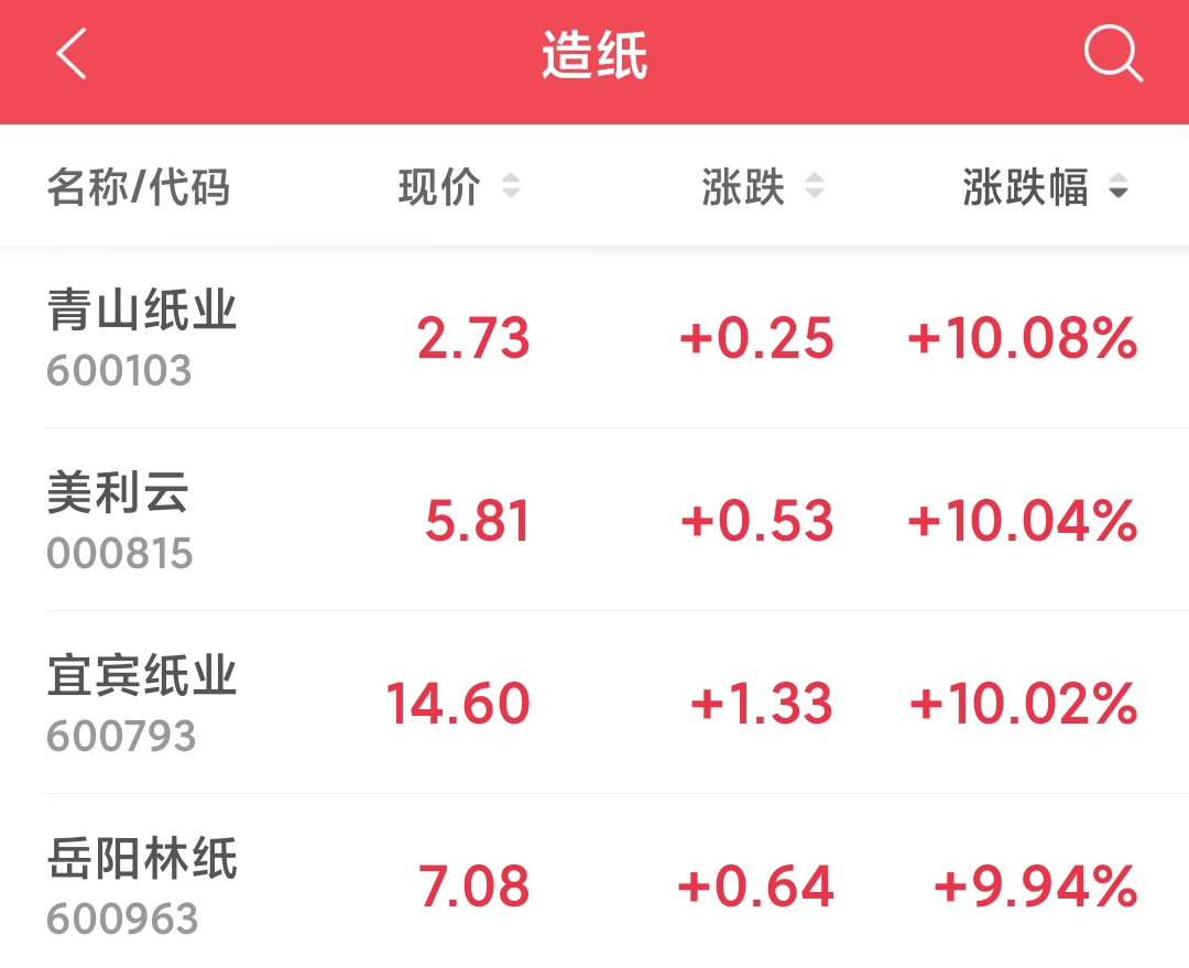 1、周一,一条纸厂纷纷停产的消息突然冲上社交平台热搜榜。 三月份以来,多家造纸企业宣布停机检修。背后原因是长纤原料、进口纸量缩减所带来的供给缺口开始显现,纸浆原料价格上涨,造成浆价和纸价的倒挂,一些纸厂只能停机。据悉,由于成本高企,五月份以来,国内主要文化纸企业和贸易商再次发布涨价函,其中文化纸普遍涨价200元/吨,白卡纸涨价则达到1000元/吨。 值得一提的是,周一造纸板块有多只标的涨停,且全部为两连板。