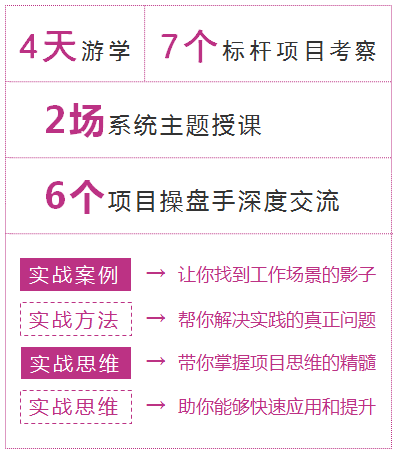 针对于 不同市场痛点、存量空间改造、盈利能力提升要点、产品研发及策划、轻重资产投资要点 等内容,知学学院联合幻境于5月25日-28日联合推出 《夜游及沉浸式项目内容运营与资产提升标杆案例游学第4季》课程。