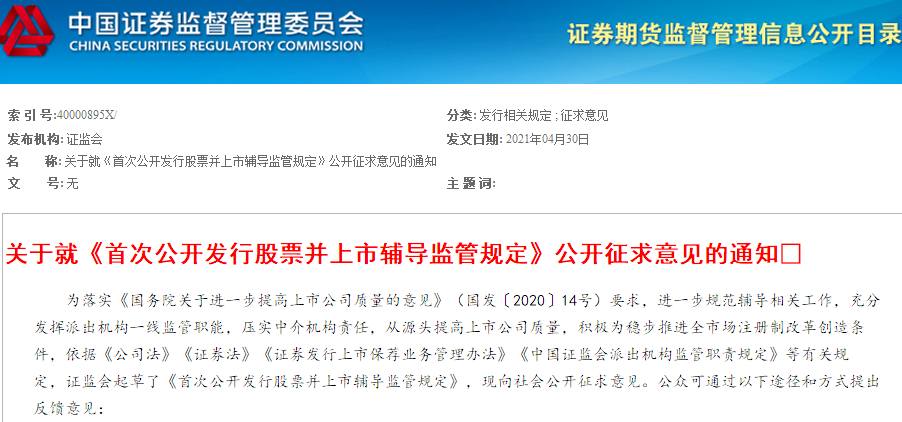4月30日晚,证监会就《首次公开发行股票并上市辅导监管规定》(以下简称《辅导监管规定》)对外公开征求意见,征求意见稿充分吸收了派出机构以往辅导监管工作中形成的成熟做法,对辅导目的、辅导验收内容、辅导验收方式、辅导验收程序、加强科技监管等内容进行了统一规定。