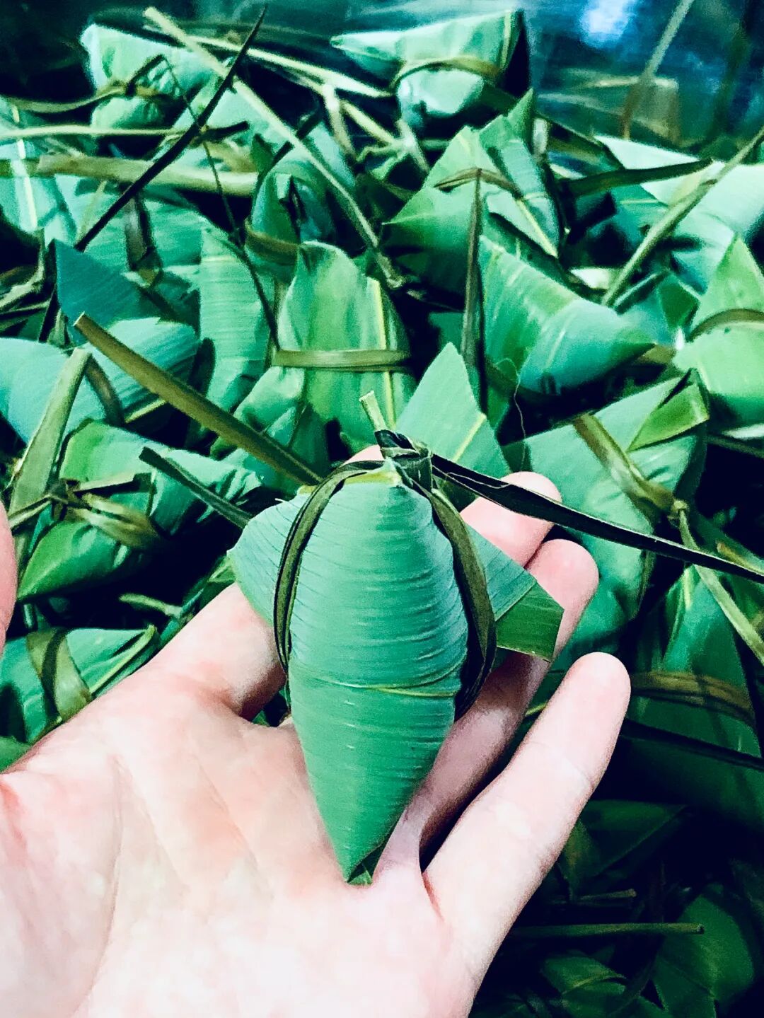 制好了茶叶,还得手工包上新鲜的粽叶,进烤箱焙制5-7小时,一款粽茶才大功告成。
