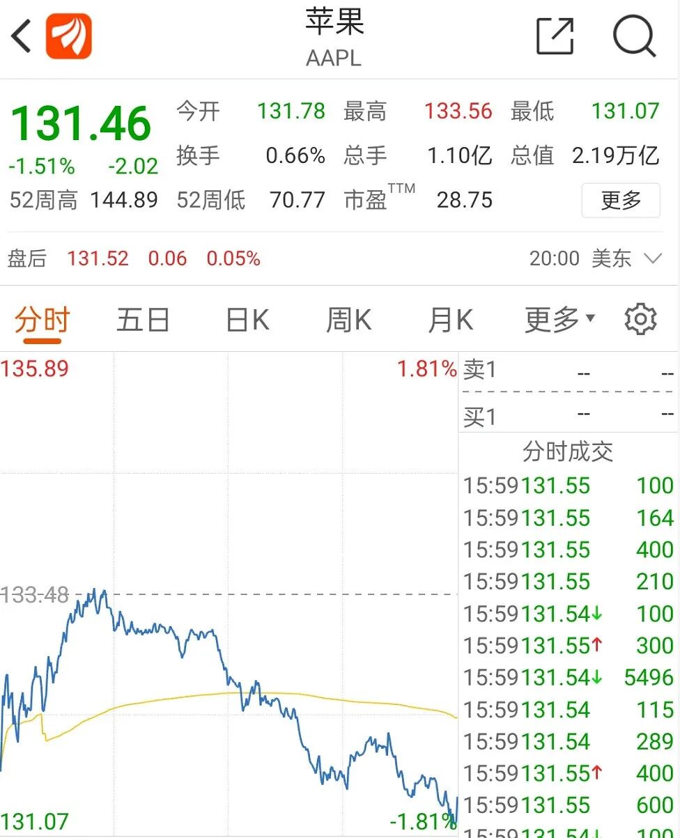 受此消息影响,4月30日当天苹果公司的股价一度跳水近2%。