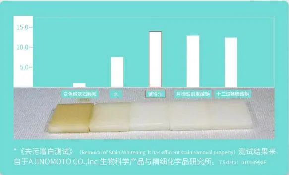 根据测试结果显示,健得乐去渍亮白效果好于其他实验对象。