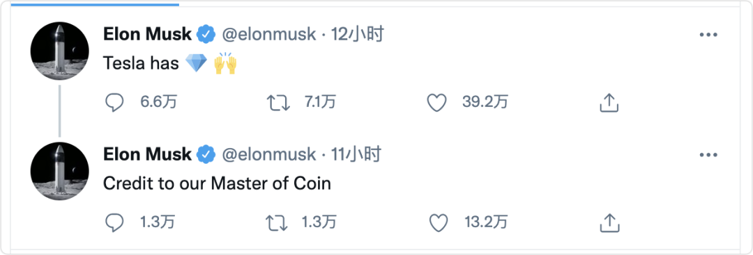 今年2月初,马斯克旗下的特斯拉也曾宣布,已经买入了价值15亿美元的比特币,另外允许消费者用比特币支付。这个消息也直接推动了加密货币市场的一轮暴涨。
