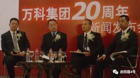 从左至右分别为时任万科地产设计总监张纪文、万科总经理郁亮、万科董事长王石、主持人上海万科公司总经理丁长峰