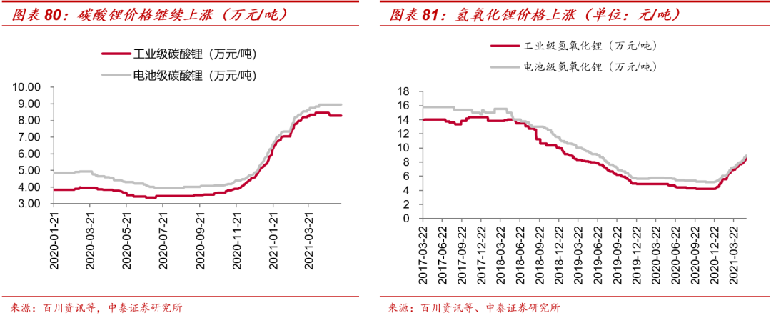 全球新能源产业景气度持续上升,国内与欧洲电动车市场共振,上游原材料价格上行趋势不断强化: